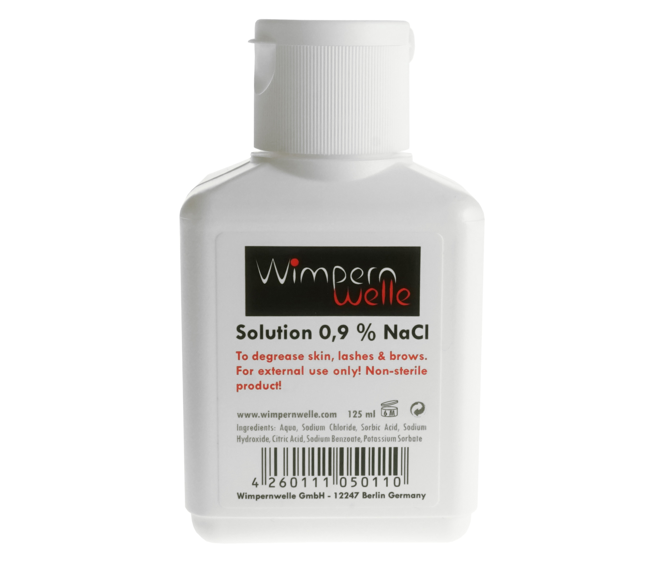 Soluție fiziologică salină (articol nr. 10330) - o necesitate înainte de fiecare tratament, pentru degresarea pleoapelor si genelor.