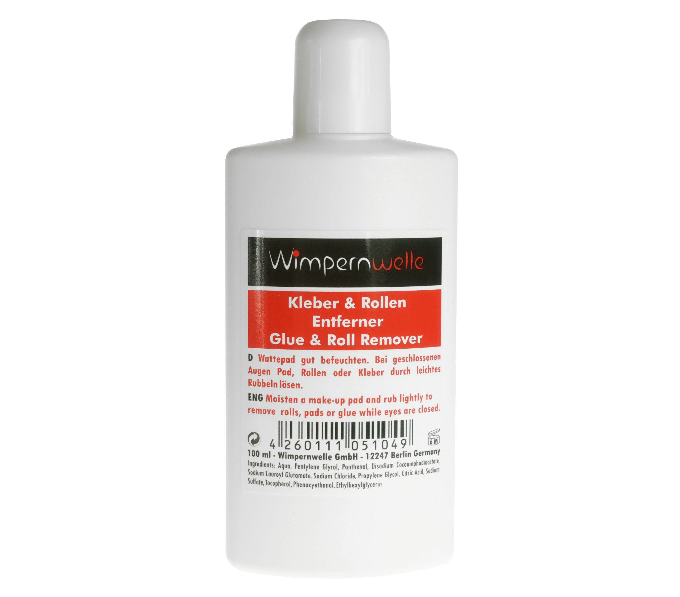 Soluție pentru îndepărtat adezivul și bigudiurile (articol nr. 10336) pentru îndepărtarea mai ușoară și rapidă a adezivului special și a adezivului POWER PAD® din gene precum și a padurilor după procedură.